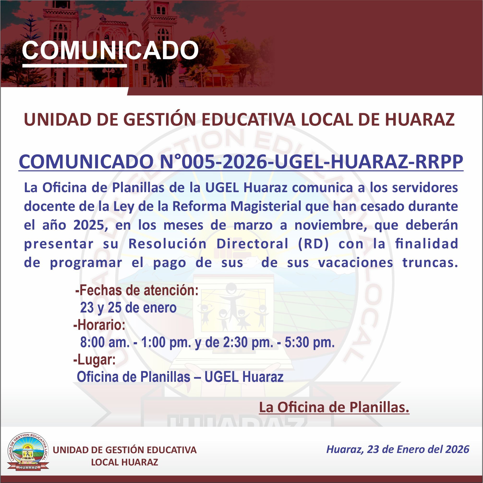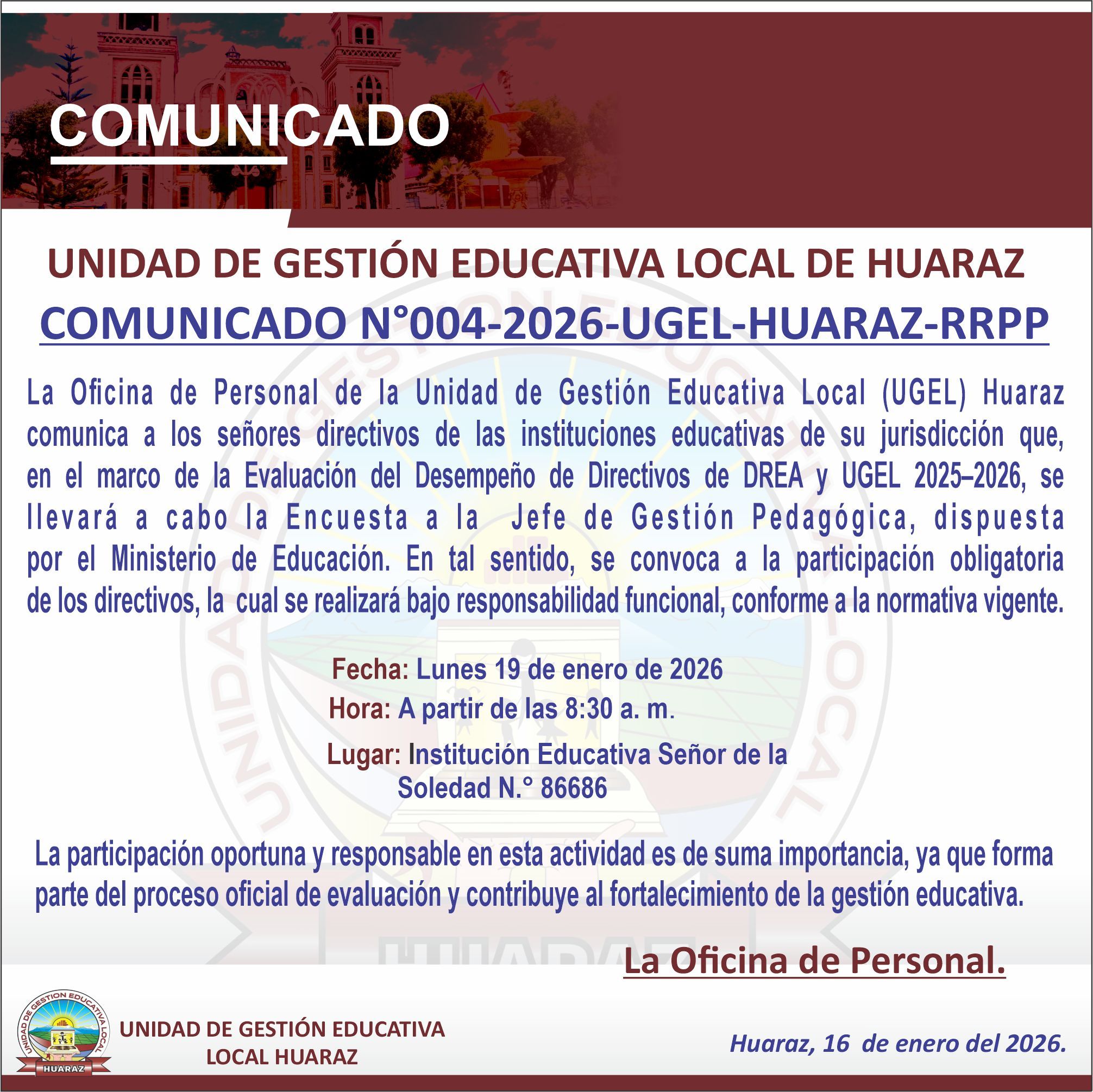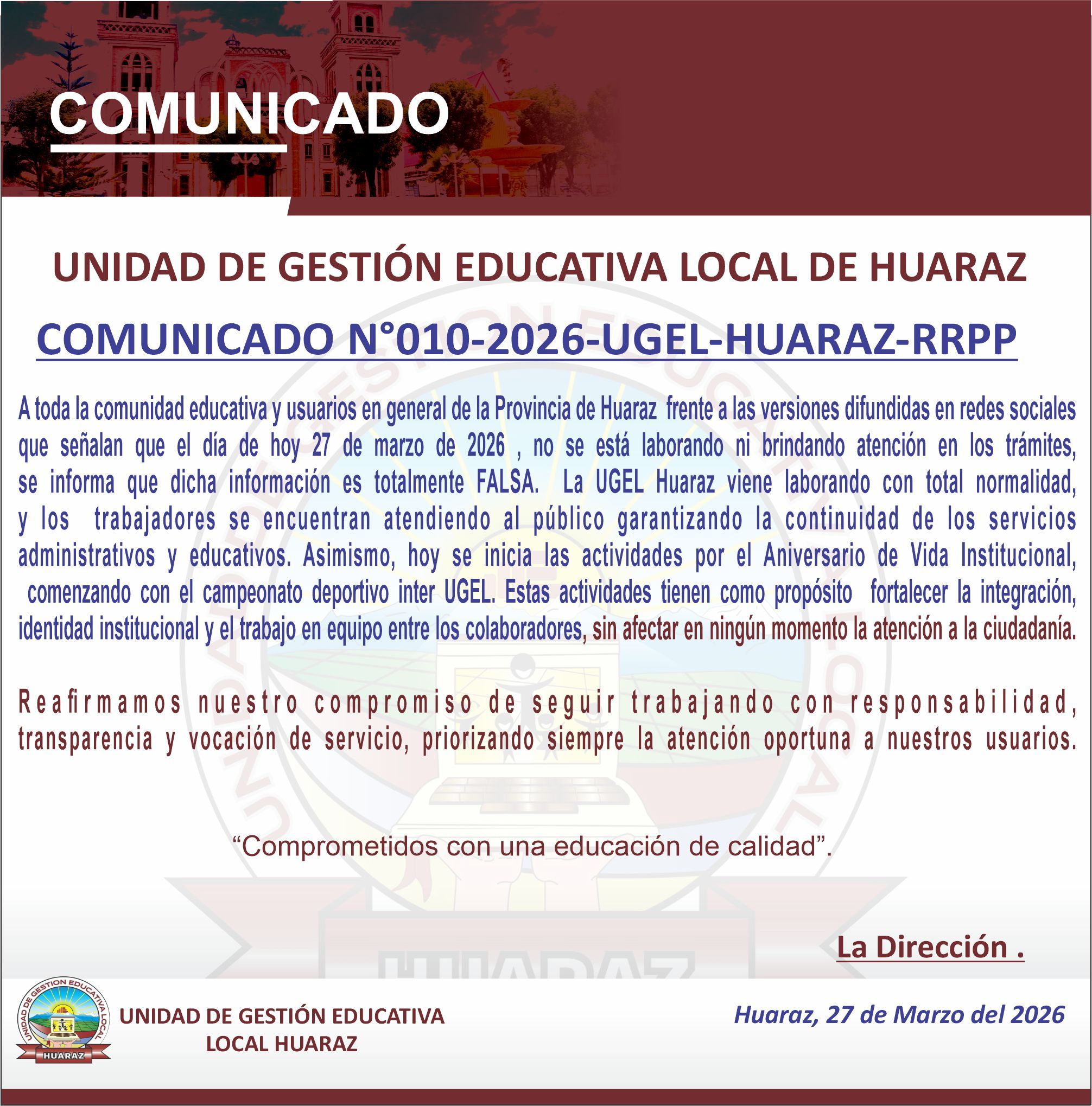 BUEN INICIO DEL AÑO ESCOLAR 2026 - UGEL HUARAZ