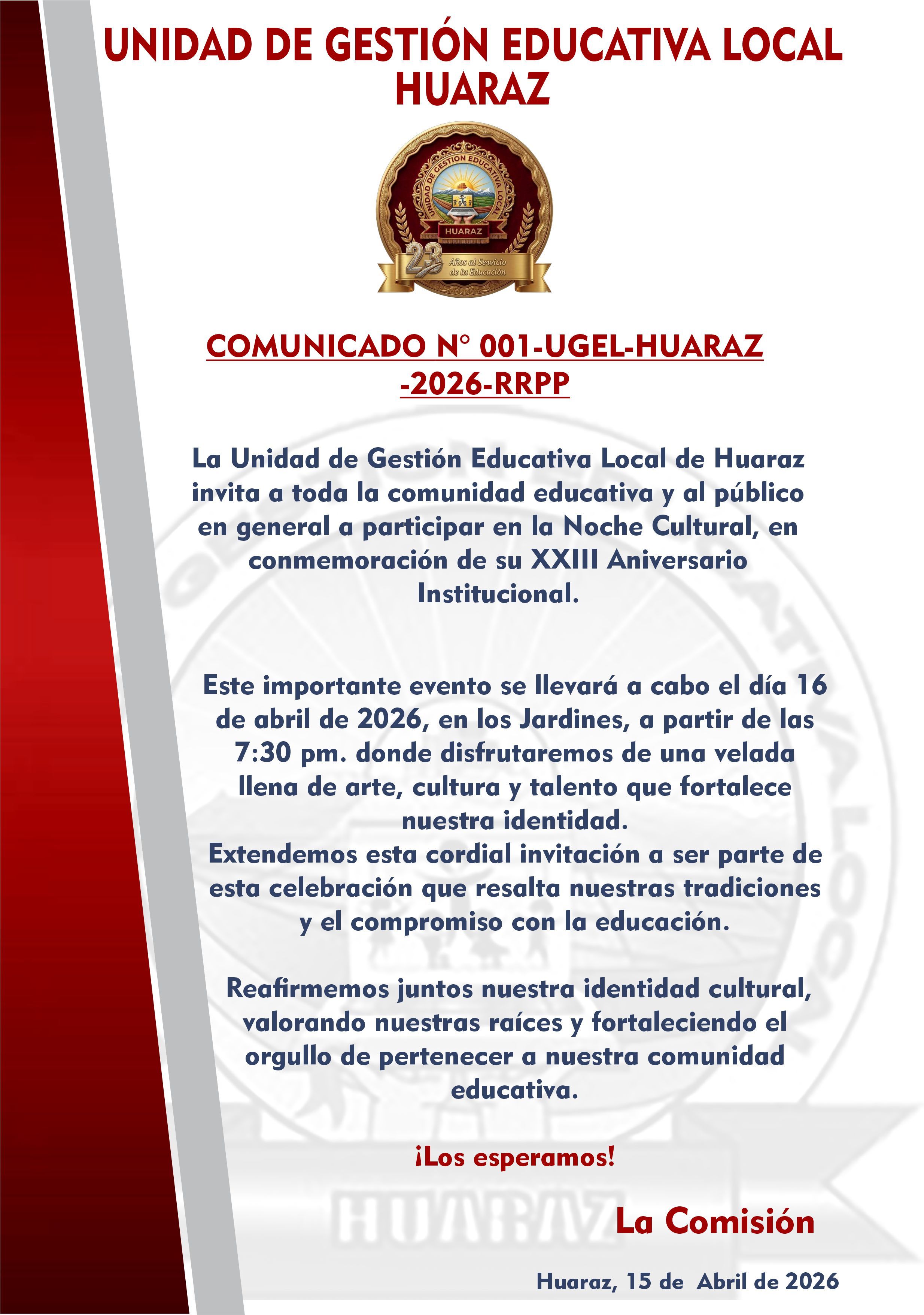 NOCHE CULTURAL - UGEL HUARAZ 2026